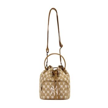 MLB Monogram Jacquard Bucket Bag New York Yankees Brown có form túi dạng rút dây độc đáo. Túi có hai ngăn vì thế không gian túi rất rộng rãi và tiện lợi cho người sử dụng. Tay cần, dây đeo vai chắc chắn, khóa và dây rút có thể điều khiến linh hoạt theo sở thích.