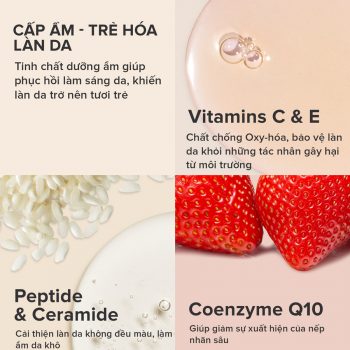Kết hợp giữa vitamin C và chuỗi các axit amin cùng chất chống oxi hóa tiềm năng.
